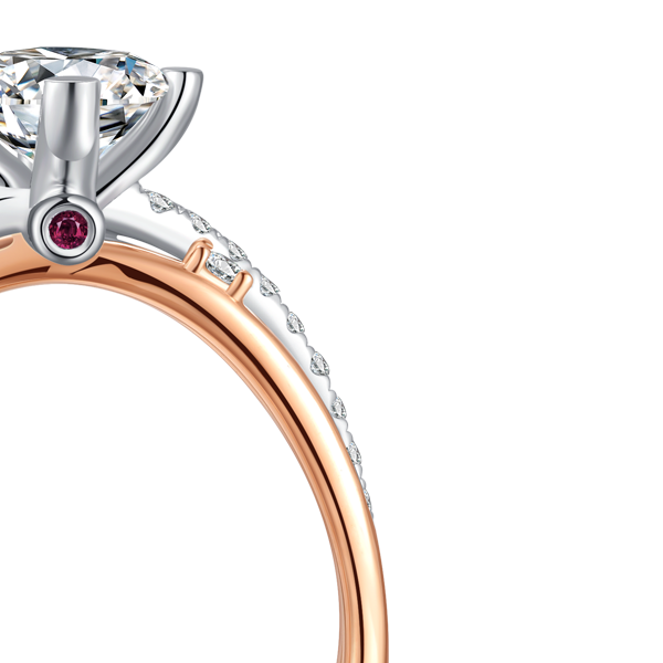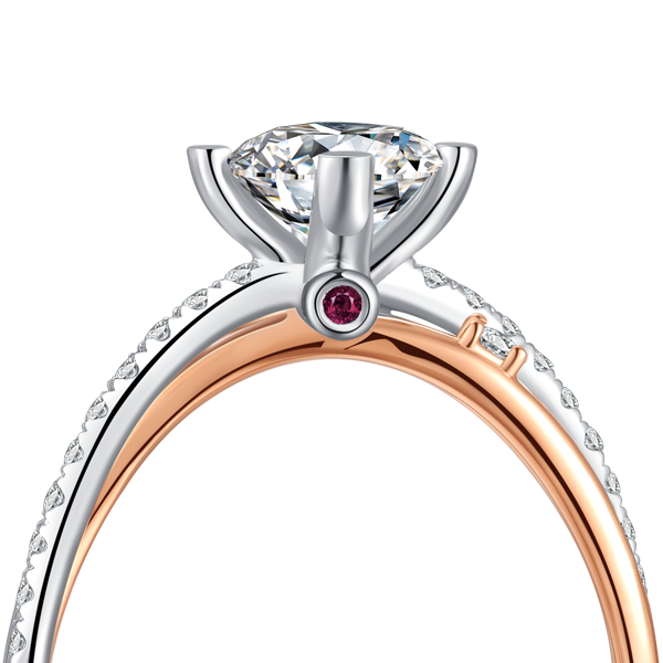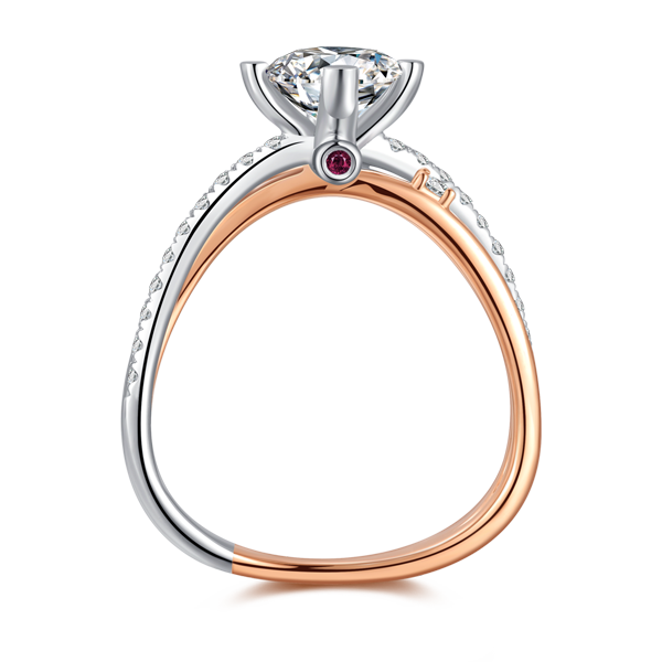 18K真分色无缝焊接 / 围形镶托呈现钻石全貌 / 交错镂空戒臂雍容华贵