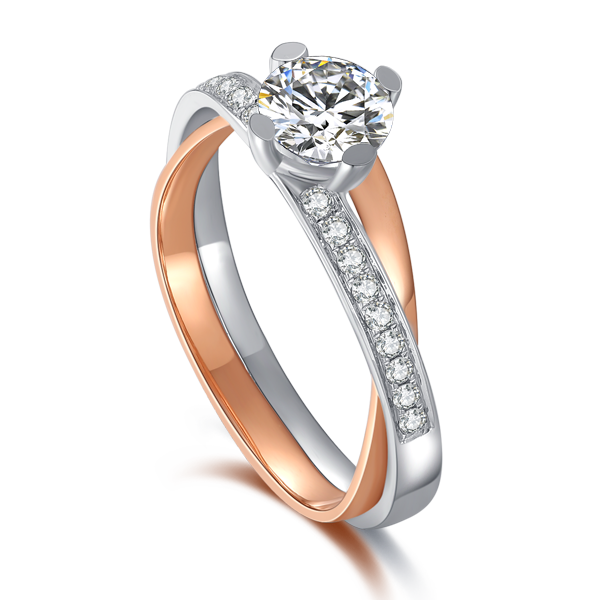18K真分色无缝焊接 /围形镶托呈现钻石全貌/交错镂空创意戒臂时尚别致