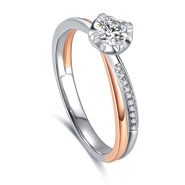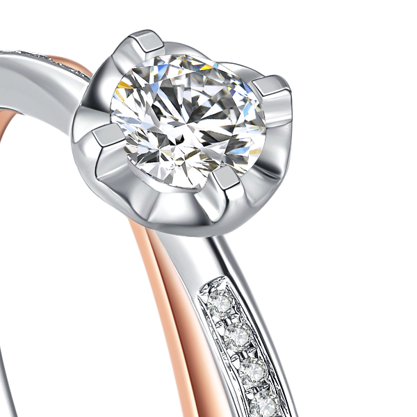 18K真分色无缝焊接 /心形镂空镶托/极简错色戒臂经典雅致