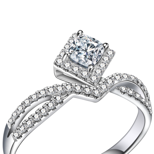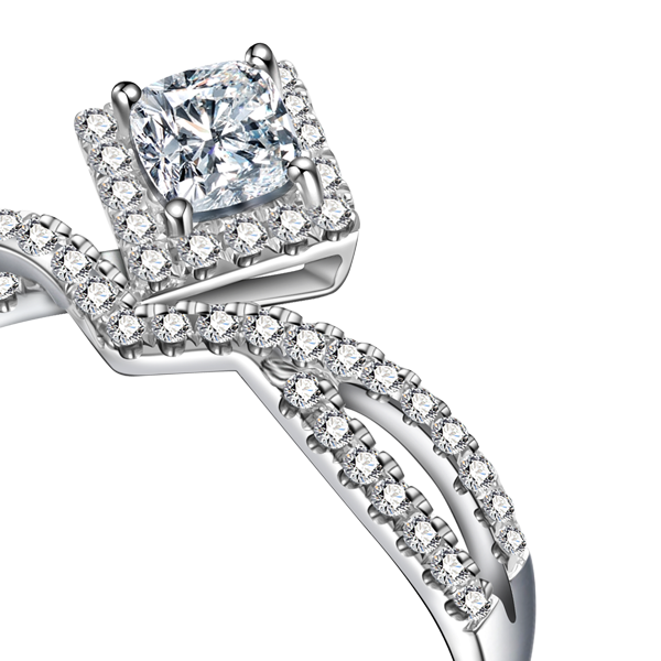 突出嵌于中央的公主方钻石,满钻镶嵌尽显尊贵华美