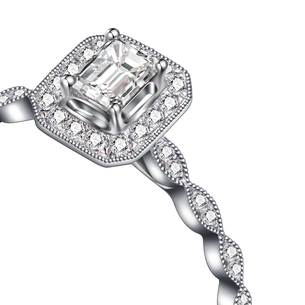 主钻和戒臂辘珠边赋予整枚钻戒宫廷的风情,尊贵至极